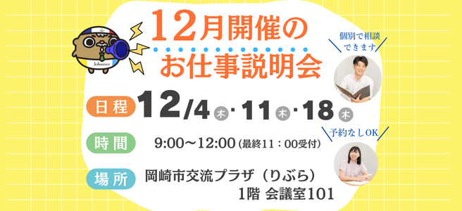 ⋈・・・・・・・・・・・・・・・・・・・・・ ⋈ お仕事説明会のお知らせ⋈ ・・・・・・・・・・・・・・・・・・・・・ ⋈ 気になる求人のアレコレ 担当スタッフが1対1で丁寧にお答えします♪ 〇参加費:無料 […]